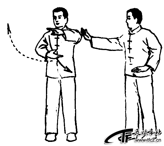太极拳手法之一。分掌是太极拳中最主要的手法。太极拳中有很多动作是由分掌结合不同的步型、步法组成的,如野马分鬃、斜飞式、揽雀尾中的“掤”等。动作过程:以右分掌为例①左臂微屈,置于体前,高与肩平,掌心向下;右臂微屈,右手置于左胯前。两手成抱球状。(图2—4—21—①)②上体微右转,右掌向前上成弧形分开,置于体前,左掌向下按于左胯旁。(图2—4—21—②)动作要领:以腰为轴转体带动双掌分开;两臂分掌后成弧形,松肩、垂肘。注意事项:老年初学者做分掌时,要注意两掌沿弧线运动,不能直来直去。