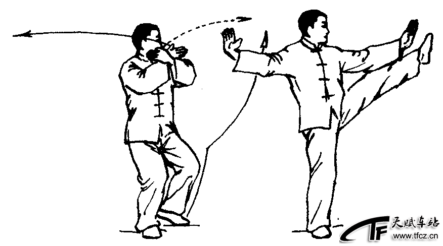 太极拳腿法之一。是一种以脚掌为力点的屈伸性腿法。分脚是太极拳七种主要腿法之一,各式太极拳中都有分脚动作。分脚是各种太极拳套路中出现次数最多的腿法之一。动作过程:(以左分脚为例)右腿微屈站稳;左腿先屈膝提起,然后小腿上摆。两手成掌抱于胸前,分脚的同时,两掌内旋,向左右弧形撑开,与肩同高,左掌与左脚在同一方向。(图2—4—33)动作要领:分脚时要做到:①上体中正自然。②发力沉稳,缓慢分开,力达脚掌。③左腿分出后,自然伸直,脚面展开,脚要高过腰部。攻防含义:分脚常用于点击对方的头部和上体。注意事项:①分脚时一般伴随有双手分开的动作。②注意分脚与 ......