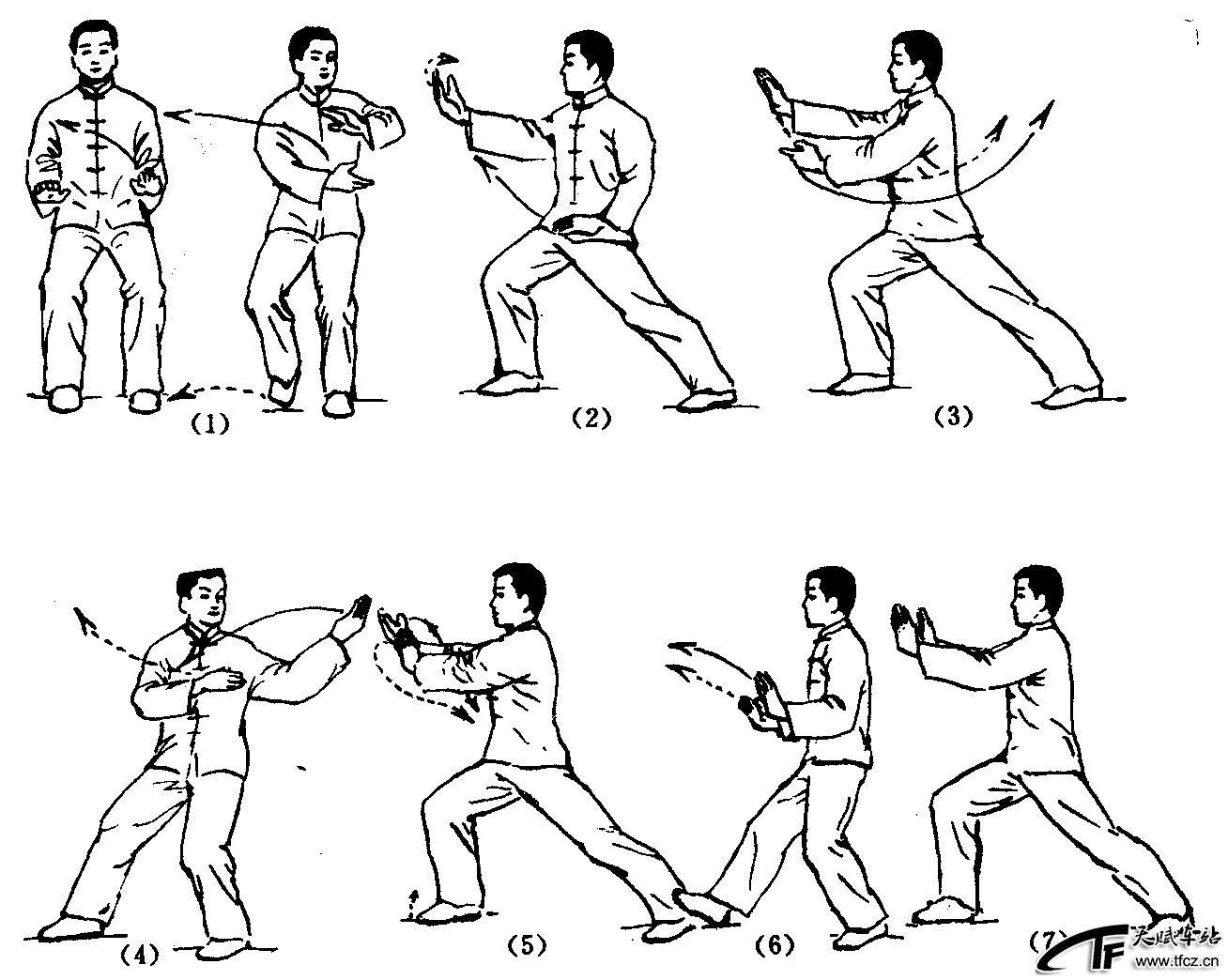 太极拳动作之一。揽雀尾是太极拳基本动作。各式太极拳中都有此式。在陈式、孙式、武式太极拳又称此式为“懒扎衣”,其动作由“掤”、“捋”、“挤”、“按”4式组成,但各式太极拳的动作有所不同。动作过程:(以右式为例)①左脚支撑,右脚收至左脚内侧。两手成掌,胸前划弧,成抱球状。(图2—4—40—①)②上体微右转,右脚向右前方迈出一步,脚跟先着地,随着重心前移,全脚踏实;左腿蹬伸成右弓步。右臂呈弧形向上方掤出,高与肩平;左掌按落于左胯旁,掌心向下。(图2—4—40—②)此式为“掤”。③上体微向右转,右手随之前伸,右前臂内旋,掌心向下;左前臂外旋,左掌心向上,经腹 ......