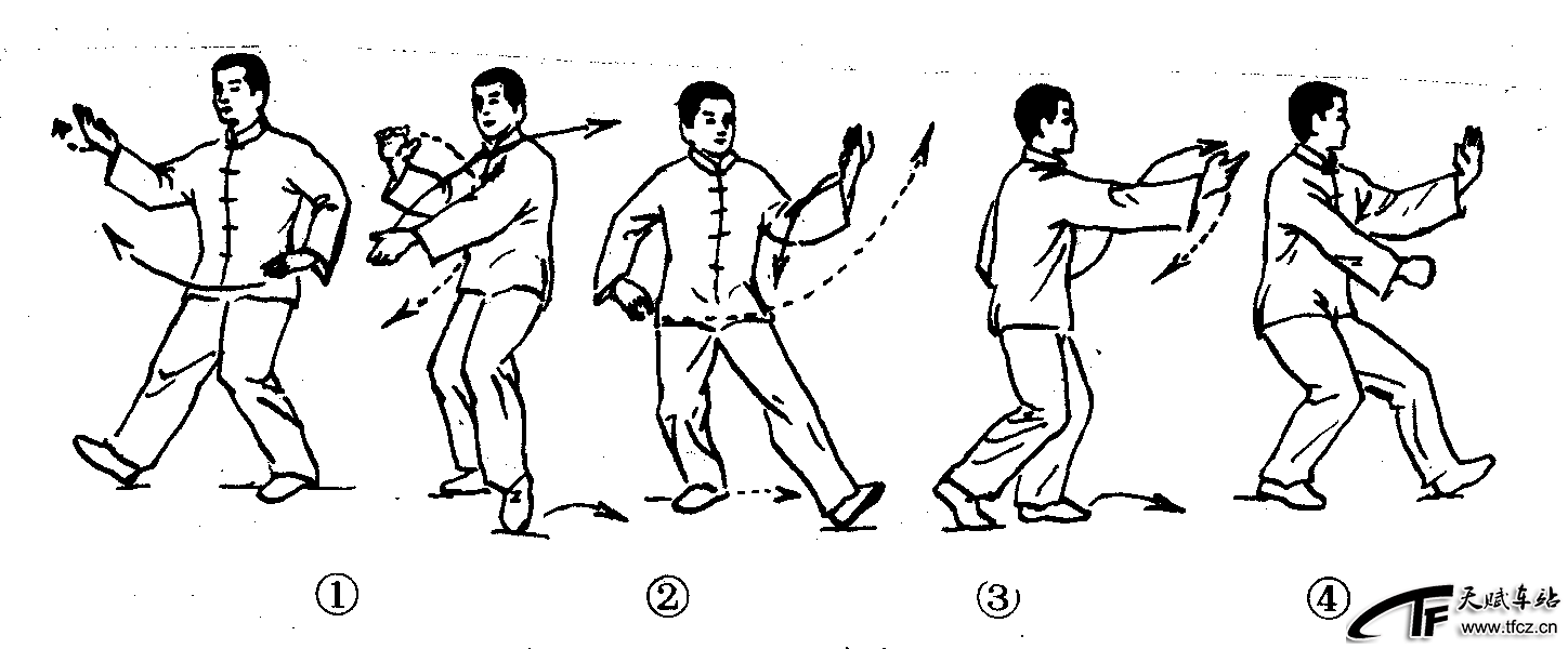 太极拳动作之一。吴式和老杨式太极拳中称此式为“肘底看捶”。在孙式太极拳中称“肘下看捶”。肘底捶是太极拳中5个拳法动作(俗称“太极五捶”)之一。动作过程:①右腿微屈支撑,左脚收至右脚内侧,两臂成抱球状。(图2—4—56—①)②上体左转,左脚向左前方摆脚迈出一步,脚跟着地,脚尖外撇;左掌经右前臂下方向左上方划弧,掌心向内,高与头齐;右掌经左胸前划弧下落至右胯旁;目视左掌。(图2—4—56—②)③上体继续左转,重心前移至左腿,右脚跟进半步,前脚掌落在左脚后面。左臂内旋,左掌向左、向后下划弧至体侧,掌心向下;右掌向右、向前划弧至体前,掌心斜向上,高与鼻平。目视 ......