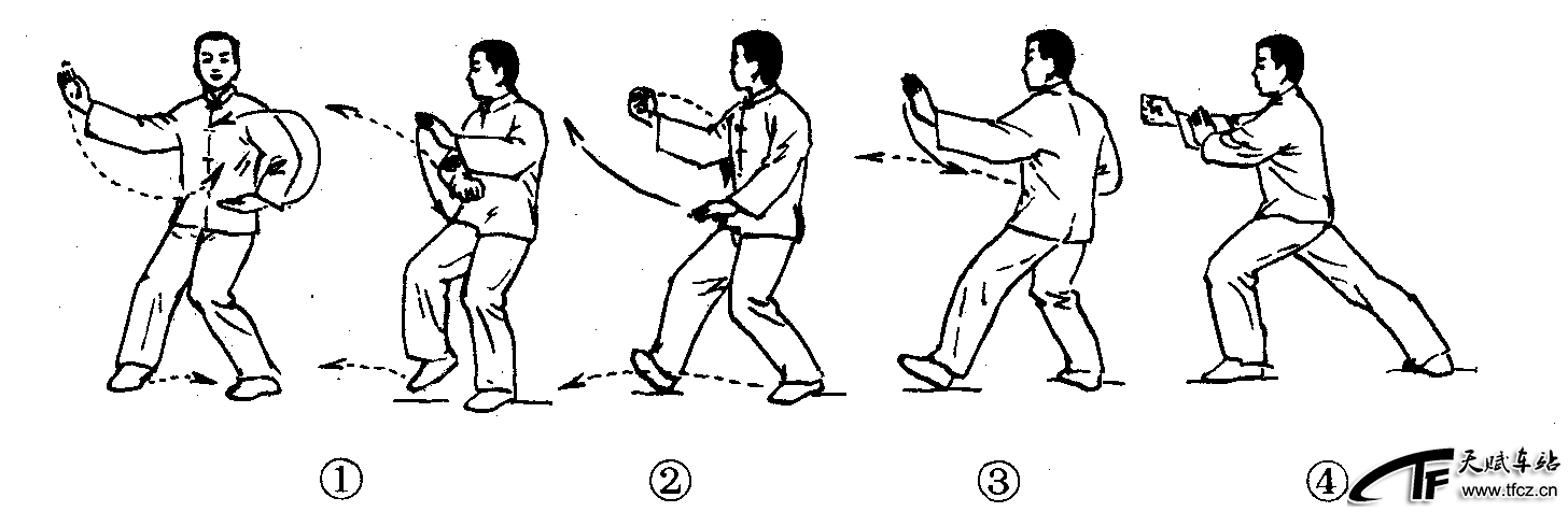 太极拳动作之一。武式太极拳中称此式为“搬揽捶”。搬拦捶分为定步、进步和卸步3种形式,其中包括搬、拦、捶3式。动作过程:(以左进步搬拦捶为例)①以左腿稍屈支撑,右脚收至左脚内侧。左掌在体侧划弧屈肘收至胸前,掌心向下;右变拳向下、向左收至左肋前,拳心向下。(图2—4—57—①)②右脚向前迈出一步,脚跟着地,脚尖外撇,上体右转。右拳向前翻转搬出,高与胸平,拳心向上;左掌顺势按于左胯旁,掌指向前。(图2—4—57—②)此式为“搬”。③上体右转,重心前移,左脚提收上步,脚跟着地。右拳随身体右转向右划弧,收于右腰间,拳心向上;左掌向左、向前划弧拦出,掌心斜向下。( ......