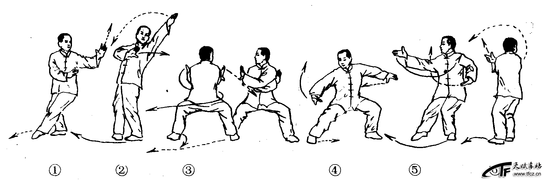 八卦掌八大掌法之一。动作过程:①左势青龙探爪。(图2—4—75—①)②背身拔剑:右脚向左脚前进步,脚尖外摆指向圈外;同时左臂外旋延伸;右掌随之上提身体略向后仰;目视左掌。(图2—4—75—②)③苍龙卷尾:左脚向前进步,脚尖内扣,向右转体坐身成马步(面向圈外);同时左掌由上经脑后向右肩外侧下抹,掌指向上;右掌掌指朝上推至左腋下。(图2—4—75—③)④白蟒伏草:左脚尖内扣,右脚随身体右转向后撤步成马步(面向圈内);同时右掌由左肩部随后转之势,以掌根为力点向右侧横击,掌指向前;左掌向左推掌,掌心向外,虎口向下。(图2—4—75—④)⑤猿猴托果:左式猿猴托果。(图2—4—75—⑤)⑥金 ......