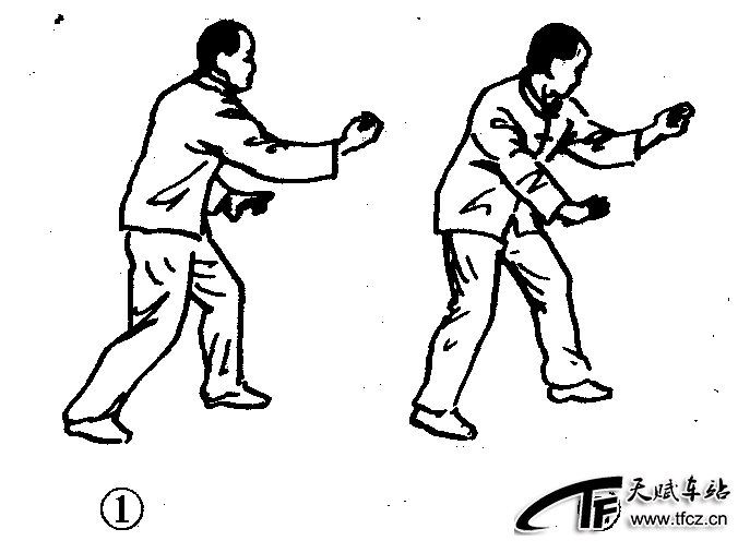 大成拳的基本拳法之一。为左右拳向前击打的动作。预备式为左技击桩。动作过程:崩右拳时右腿蹬地,上体向左拧转,使身体重心移至前脚,同时右掌变拳向前击出;左掌随之内旋,经右拳上方向后拉至腹前;头上顶,略向左转,目斜视前方。(图2—4—86—①)崩左拳时左腿蹬地,上体向右拧转并微侧倾,使身体重心移至右脚内侧;同时左掌变拳向前击出,右拳变掌内旋,经左拳上方后拉至腹前;头上顶,略向右转,目斜视前方。(图2—4—86—②)大成崩拳试力时左右拳依次缓慢前击;发力时可快速击打一拳,或左右拳依次快速前击。动作要领:右崩拳时要注意右髋内合,左腿向后撑顶,左掌用力(意念用力) ......