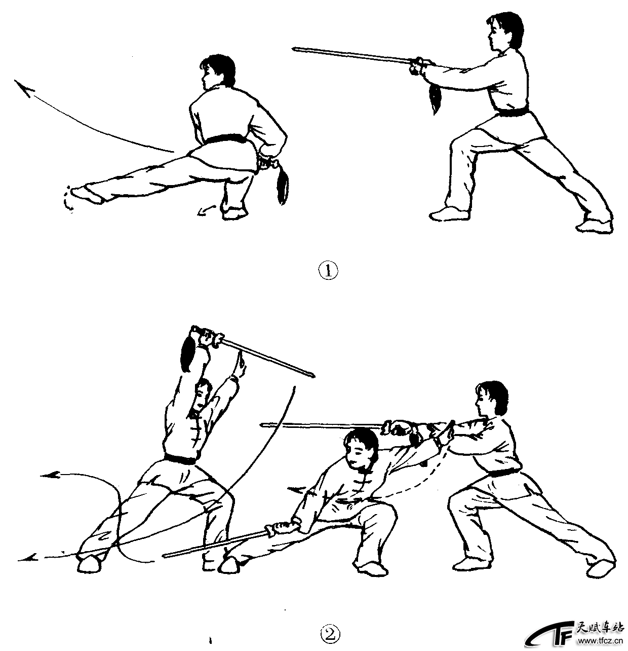 剑法之一。以剑尖为力点,使剑由后向前或由前向后,随身体一起的弧形向前穿出的动作。穿剑在传统剑术套路中出现的次数较多,现代剑术套路中出现得不多,出现时多为反穿剑。动作过程:穿剑的种类主要有:剑成平扁,经胸腹间弧形向前穿出的平穿剑(图2—4—101—①);前臂内旋,立剑,剑由前向后转动穿出的后穿剑(又称反穿剑)(图2—4—101—②)和随身体左转,剑由前向左、向右贴身穿绕一周的抡穿剑。动作要领:穿剑时要做到:①用力柔和,剑身相随,协调一致。②弧形穿击,力达剑尖。③后穿剑时,持剑手臂有一先内旋后外旋的转动过程,同时,剑尖高不过膝,低不触地。④多用螺把握剑 ......