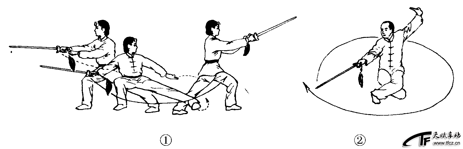 剑法之一。是剑贴近地面向右或向左横出的动作。在传统剑术中,称扫剑为下盘剑。在现代剑术套路中扫剑是出现次数较多的剑法之一。动作过程:扫剑分为持剑手手心向上,以剑的下刃扫动的正扫剑(图2—4—105—①);持剑手手心向下,以剑的下刃扫动的反扫剑和在转体的同时做扫剑的旋转扫剑(图2—4—105—②)。动作要领:①扫剑时以臂领剑,力达剑身下刃。②剑成水平,与踝关节同高。③旋转扫剑要旋转一周或一周以上。④多用满把握剑。攻防含义:扫剑是进攻兼防守型剑法。其特点是攻击范围大,攻防兼备,主要用于攻击对方的膝以下部位。注意事项:老年初学者和下蹲有困难的老年人做扫剑 ......