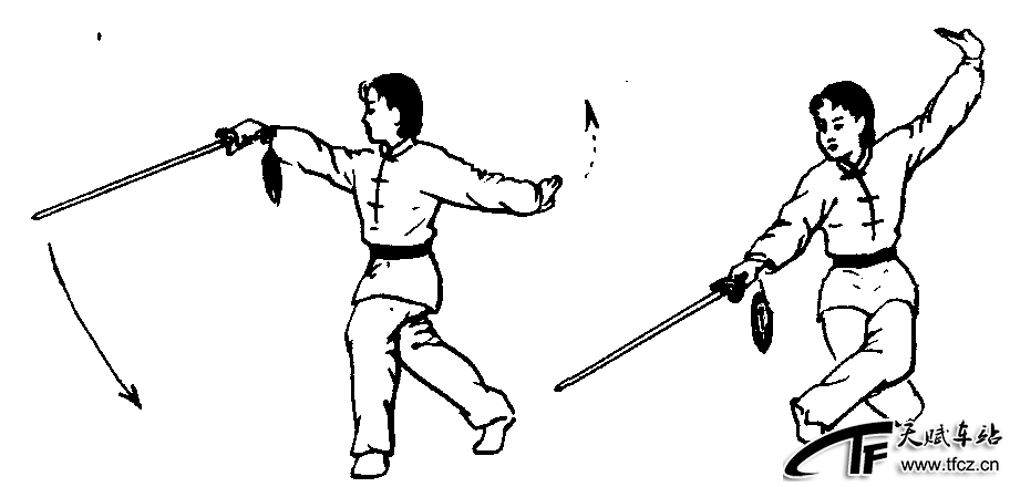 剑法之一。是以平剑由上向下按压的动作。在《武当剑法大要》等武术古籍中对压剑有较详细的记载。在现代剑术套路中压剑出现得不多,在太极剑套路中有所应用。动作过程:右手持剑,手心向下,剑尖向前成平剑,向下按压,左手上架,同时两腿成下蹲或歇步。(图2—4—110)动作要领:做压剑时要做到手心向下,剑身扁平,松肩沉腕,着力点在侧身平面;多用螺把握剑。攻防含义:压剑是防守型剑法,当对方剑攻来时用剑身将其压住或压低。注意事项:老年人做此剑法时,如下蹲有困难可半蹲,但要将剑向下按压的动作做出。
