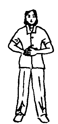 练功十八法第6套第2节。动作过程:两脚分立,略宽于肩,两掌叠于上腹部,右掌在内。(图2—4—151)先在上腹部做小圈按摩8次,然后由下腹部再扩大至胸部做大圈按摩8次,再反方向由大圈到小圈各按摩8次。注意事项:按摩时手掌要贴紧腹部,向上绕圈时吸气,向下时呼气。此功法对胃肠功能紊乱患者有一定的治疗效果。