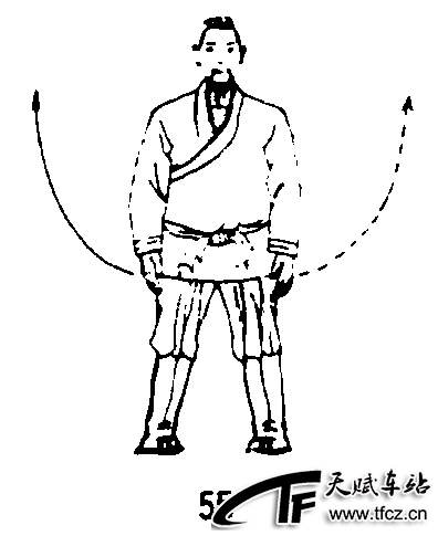 调整阴阳 2024/08/20 次浏览 四十九式经络动功预备势之二。动作:重心移至右脚,右腿半蹲,左脚向左开步,随着重心移到两脚之间将腿伸直;眼平视前方。(图55)默念练功口诀:夜阑人静万虑抛,意守丹田封七窍,呼吸徐缓搭鹊桥,身轻如燕飘云霄 ......