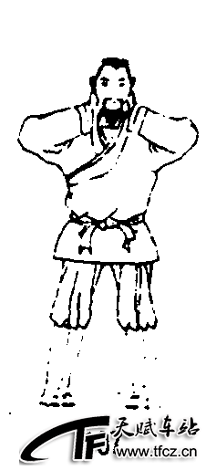 四十九式经络动功第3段“导气”动作之二(全套动作顺序第二十四式):①随着吸气,提肛调裆;两掌从关元经天突上移至承浆穴,继而绕地仓、迎香、睛明至神庭将十指分开,用指尖从前发际梳到后发际。(图104、105、106)②随着呼气,松腹松肛;两掌分别从后发际向前经面颊使中指端至承浆穴。(图107)练功次数:摩面梳头共做3次。要点:动作速度均匀,力量柔和;意在丹田,高血压患者可意守涌泉。