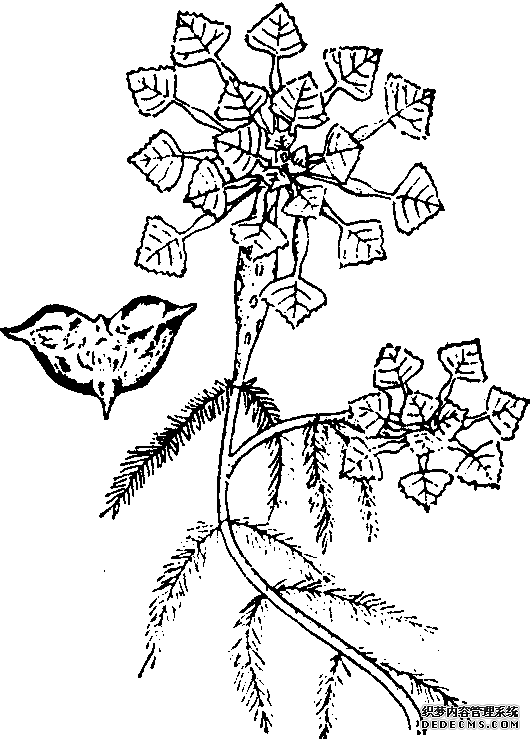 双子叶植物,菱科。俗名称“菱角”。生活在水中的一年生草本植物。喜在温暖阳光下生长。菱的叶有2种,沉浸在水中的叶叫“沉水叶”,细丝状,好像须状根;浮在水上的叶柄有浮囊,叶片为菱形。夏末秋初开花。花传粉受精后便沉到水中,在水中发育长成坚硬的果实。由于果实有坚硬的4个角或2个角,所以称它“菱角”。我国南方栽菱较多。果实可吃,肉厚味香,含有丰富的淀粉、葡萄糖和蛋白质,成熟果实也可制成淀粉代替粮食,营养价值不亚于板栗。因不含脂肪,故久食可减肥健美。菱能养神强志,补脾胃、强股膝、益精气,老年人常食有益延年。