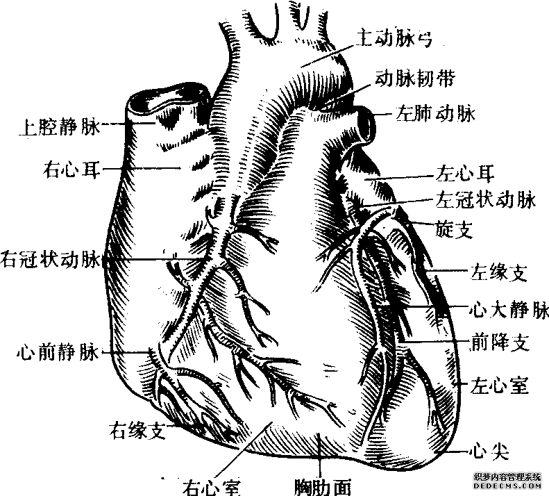 指维持心脏血液循环的血管。包括动脉、静脉和毛细血管。冠状动脉分左右两支,起始于主动脉根部,行走于心脏表面并逐渐分支,以垂直于心脏表面的方向伸入到心肌组织中。小分支一般分为两类,一类很快分为许多细支,分布于心肌层的外3/4~4/5;另一类数目很少,垂直穿入心肌层,并达心内膜下形成血管丛,以营养心肌层的内1/4~1/5。毛细血管分别汇集成小静脉,其中少部分静脉经心前静脉进入右心房或直接开口于心脏各腔;绝大部分静脉汇入冠状窦而流回右心房。因此,冠状窦的血量可代表冠状循环的回心血量变化。在冠状动脉的分支有前降支、左旋支,主要营养左心室前壁(胸肋面)和侧壁; ......