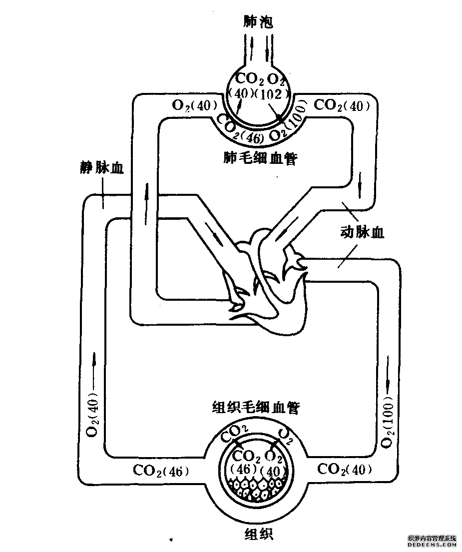 指肺泡与血液及血液与组织之间,氧和二氧化碳的交换。气体分子总是处于不停地运动之中,分子运动便产生压力。气体分子越多,其运动所产生的压力越大。气体分子总是由压力高向压力低的一方移动,物理学将这种现象称为扩散或弥散。气体交换就是通过扩散方式进行的。人体内气体扩散的方向和速度取决于细胞膜两则该气体的分压差,因此气体分压差是气体交换的动力。气体分压是指在两种以上的混合气体中,某种气体的压力。肺泡、血液及组织内氧和二氧化碳分压是不同的(见表)。由于它们之间有分压差,所以存在着气体交换的动力。