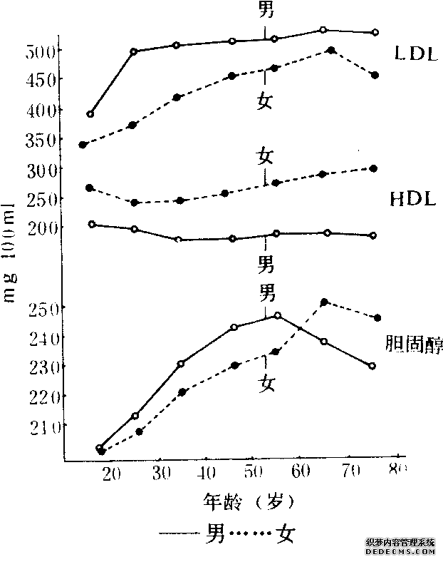 体内的脂质可分为组织脂质和贮存脂质两部分。组织脂质主要是类脂,包括胆固醇和磷脂,是构成组织细胞的重要成分;贮存脂质主要是脂肪,贮存于皮下组织、内脏器官周围、胃肠系膜及肌间质等处。胆固醇代谢失调可导致动脉硬化。因为胆固醇在血液中不能以游离状态存在,而是以多种形式与蛋白质结合成脂蛋白进行运输,其中主要结合成低密度脂蛋白(LDL)和高密度脂蛋白(HDL)。低密度脂蛋白的颗粒较大,进入动脉内膜后不易通过弹力层,大量沉积在动脉管壁内,从而导致动脉硬化。高密度脂蛋白的颗粒较小,进入动脉内膜后可通过弹力层的细胞间隙而被淋巴吸收,所以不易导致动脉硬化。