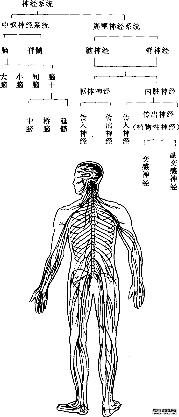 人和多细胞动物体内调节各器官的活动和使机体适应内外环境变化的全部神经装置。主要由神经细胞组成。低等动物的神经系统较简单,只有一个神经网络。随着动物的进化,神经系统不断进化,向头部集中的倾向越来越明显,至人类已达到最高程度。高等动物的神经系统包括中枢神经系统的脑和脊髓以及周围神经系统的神经和神经节。神经系统在调节和控制机体活动的过程中,首先是借助于各种感受器接受内外环境的各种刺激信息,经周围神经传至脊髓和脑,通过脊髓和脑各级中枢的整合作用,再经周围神经传至各种效应器来调节和控制各系统的活动。神经系统的功能十分复杂,概括起来可分为 ......