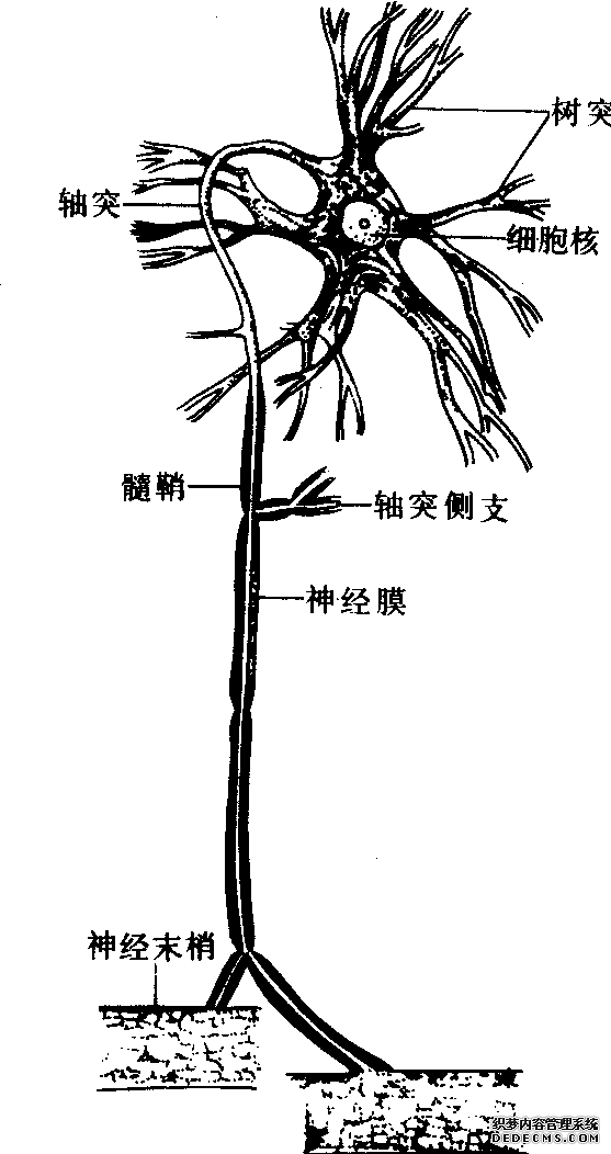 即神经细胞。是神经系统的基本结构和功能单位,具有接受刺激,传递信息和整合信息的功能。由胞体和突起两部分组成。胞体表面有细胞膜,膜内有细胞质和细胞核。突起分树突和轴突两种。大多数神经元有多个较短树突,分支较多。树突小分支表面有大量的细刺状突起,称为棘突或棘刺。这些棘突是与其他神经元的终末支形成突触的接触点。树突的机能是接受其他神经元传来的神经冲动,并将冲动传到胞体。每个神经元只有一个轴突,其分支少,但较长(最长可超过1米)。轴突末端分支多,每个分支末梢形成球形的突触小体。突触小体贴附于另一个神经元的树突或胞体表面,形成突触。轴突的机 ......