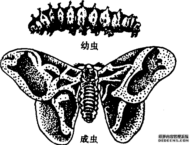 无脊椎动物,昆虫纲,鳞翅目,天蚕蛾科。原产印度。幼虫体白色、黄色或天蓝色,有黑斑或无斑。能耐高温和高湿,食蓖麻、木薯、臭椿等叶。经4次蜕皮,吐丝结茧。茧呈榧子形,顶有孔,白色,可作纺织原料。成虫较大,展翅可达9.5~11厘米。体被褐白相间的鳞毛,腹部黄褐色,翅棕褐色,一般无滞育期,有的品种已能适应我国气候,以蛹态越冬。