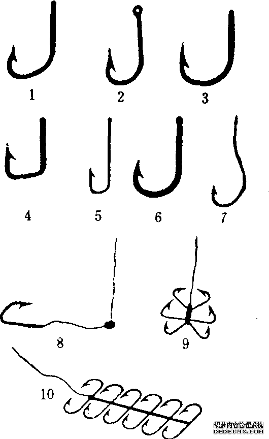 垂钓时所使用的钓鱼具之一。现代多用金属钢铁制成,适用于淡水或海水水域中垂钓。一般可分为捕捞钩和娱乐钩两类。依形状、大小不同,又可分为多种型号,可量鱼施钩,垂钓者一般多使用3~7厘米的中型鱼钩,适用于垂钓大鱼或小鱼。鱼钩以钩尖锋利、淬火适当、倒刺长短和角度适中和具有一定的坚韧弹性为最理想。用后要擦拭干净,长期不用还需涂擦油脂,以免生锈。捕捞钩较娱乐钩粗壮结实(娱乐钩细小),形状多样。钩柄有长短之分,柄上有环或无环,钩丝又有粗细之别,各有其优点。如鹤嘴形、伊斯尼形(方头钩)、丸形、鹰嘴形等钩,均受老年人和初学垂钓者喜爱。钩的大小、形状可通 ......