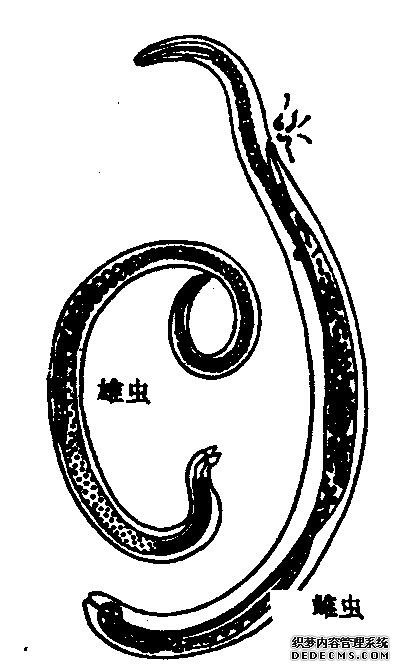旋毛虫线虫的简称。无脊椎动物,线虫纲,毛线虫科。寄生在人体可引起旋毛虫病的寄生虫。成虫和幼虫均寄生在同一宿主体内,但完成生活史必须更换宿主。主要寄生在人、猪、狗、羊等动物体内。当宿主食入含有旋毛虫包囊的肌肉(横纹肌)后,一般只需经数小时,幼虫即可在十二指肠由包囊逸出,并钻入十二指肠和空肠上部黏膜。人主要由于食入含有包囊的未熟猪肉、狗肉而感染,引起旋毛虫病。自60年代以来,我国在西藏、云南、东北等地发现有旋毛虫病暴发流行,这与当地喜吃生肉习惯有关。近年,北方吃涮羊肉时,经常有人不等鲜肉变色而食入,即引起旋毛病。有人主张涮时使肉煮老点, ......