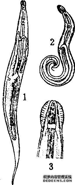 无脊椎动物,线虫纲,尖尾线虫科。身体细小,乳白色,形似细白线头。一般多寄生在人的大肠下段、盲肠及其附近的肠黏膜上,以体前端头部附着在肠黏膜上,吞食肠内容物、组织或血液,引起蛲虫病。雌虫常于夜间爬至肛门外皱襞处产出大量的卵。约经6小时,卵内幼虫即发育成熟,变成感染性虫卵。这种卵不仅污染衣被、指甲缝和食物,甚至对空气都有污染。被人吞食后,在十二指肠孵化为幼虫,逐渐移到大肠发育为成虫。成虫寿命约有1~2个月。由于雌虫向肛门外爬出并在附近产卵时,常刺激肛门及会阴部奇痒。长期反复不愈,可引起患者烦躁不安、易怒、夜惊、失眠、食欲减退、神经衰弱 ......