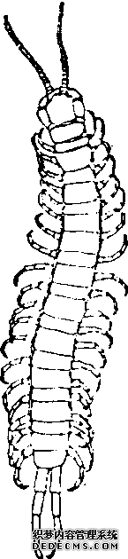 无脊椎动物,节肢动物门,多足纲(近年列为唇足纲),蜈蚣科。我国常见的为金头蜈蚣(Scolopendramutilans),体扁平而长,长约9~15厘米。体分头部和躯干部。第1对足称颚足(毒颚),有发达的毒爪和毒腺,可捕杀小动物,也能蜇向后延伸呈尾状。平时栖息于腐木与石隙中,肉食性,昼伏夜出,行动敏捷,喜食蜗牛、线虫、昆虫和蚯蚓等小动物。我国南北各省市几乎都有分布。同属少棘巨蜈蚣(Scolopendrasubspinipes mutilans)的干燥全虫,加工后可入中药,现已进行人工养殖。人被蜇后,局部出现红肿和剧痛,经涂氨水可消肿止痛。如有发炎和肿胀现象,多为第二次感染而引起,应及时医治免病情扩展。