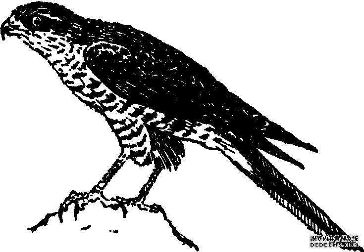又称“鹞子”。隼形目,鹰科。一种小型鹰,雄鹰体长35厘米,雌鹰约40厘米。雌鹰上体大部暗灰褐色,下体白色,带有棕褐色横斑。雄鹰上体灰褐色较深。尾羽有4条黑褐色横斑。嘴暗灰蓝色,尖端较黑。食量不大,较苍鹰容易饲养管理,适于林区老年人玩赏。