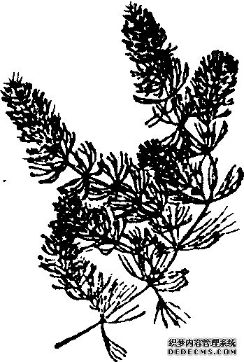 双子叶植物,金鱼藻科。俗称“松针草”。沉在淡水中的多年生水草。有时飘浮并稍露出水面。为高等无根绿色植物。茎细长而光滑,长达40~60厘米,上面有短的分枝。叶细线形,没有叶柄,约8~10片集成1轮,好像松针状。叶有叉状分枝,边缘还有刺状的小齿。生长到一定时间也开小花、结小果。我国南北各省温暖地区的湖泊、池塘、水库、水沟中都有分布。采集一些放入金鱼缸里,既可起到调节水中氧气含量的作用,也有净化水和美化环境、供人观赏的作用。但不宜多放,以免影响金鱼的活动,生长过旺时,可适当剪弃一部分。