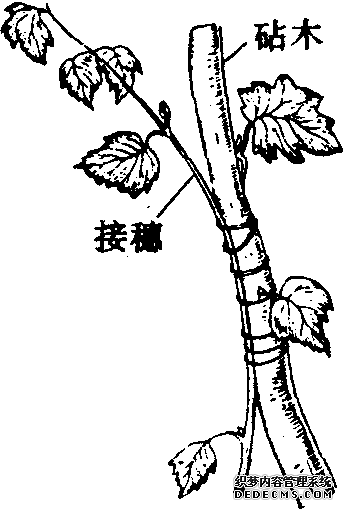 花卉枝接方法之一。嫁接时,将具有根系的2棵植株,在容易互相靠近的茎部,分别都削去一部分皮层,随即使2棵植物互相靠近接合,并用塑料薄膜带扎缚。待愈合后,将砧木的上部和接穗的下部切断,成为独立的新植株。靠接法适用于切离母株后不易接活的花卉。