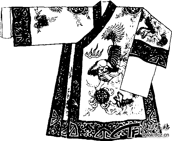 传统戏曲中武将的便服。大领大襟。带水袖的大袖,长至足,左右肋下有摆2块。衣的四周和袖口镶有与衣色不同的水纹边。衣上绣有狮、虎、麒麟、豹等走兽的图象。颜色有黄、红、紫、绿、白、黑等色。土豪、恶霸、山大王等人物也穿用。有时“告老还乡”的宰相等也穿用,但图案多绣有飞禽。