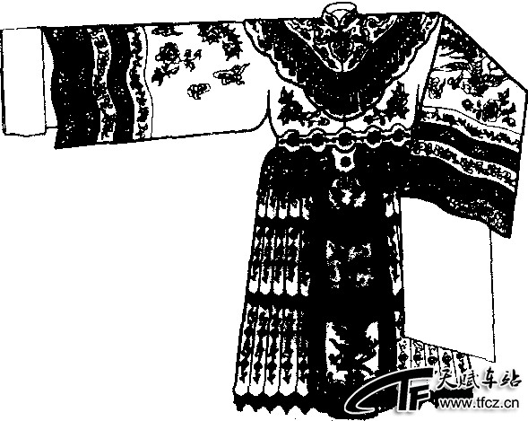 宫装 2024/08/20 次浏览 又称“舞衣”。传统戏中的后妃和王室贵人所穿用。圆领、对襟、大袖(有水袖),大腰身,长至足。腰以下周身缀有五彩飘带数十条,内连衬裙,并有6道五彩花边,周身绣花,穿时上加云肩,如《贵妃醉酒》中的杨玉环。宫 ......