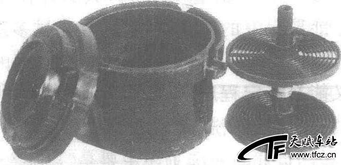 冲洗照相胶卷的专用器具。用塑胶或不锈钢制成,圆筒形。常用的有:①胶带式——卷轴部分附有透明胶带。装片时,片子放在胶带外面,片子腹膜同胶带相对,然后盘卷。②沟槽式——卷轴两端设有沟槽盘,片子循着螺旋形轨道插入盘中。使用显影罐需在暗室中装片,后于白昼光下采取定时、定温的方法冲洗。