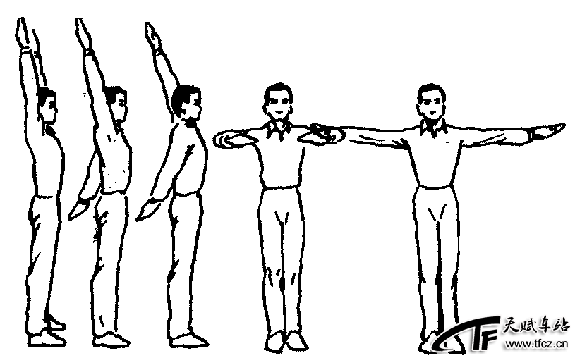 头颈运动两脚开立与肩同宽,两手叉腰。①前屈、后屈。②向左转头,向右转头。③由头前屈开始 ......
