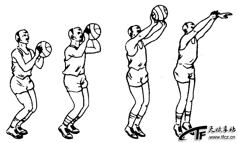 最基本的投篮技术之一,指持球者用双手将球从胸前投向球篮的动作。优点是投篮的力量大,距离远,又便于和传球、运球、突破相结合。练习时,以手持球于胸前,肘关节自然下垂,两脚前后或左右开立,两膝微屈,身体重心在两脚之间,眼睛注视球篮。投篮时,下肢蹬地发力,两臂向前上方伸直,拇指下压,两手腕同时外翻,食、中指用力拨球,通过指端将球投出。球出手时,身体随投篮出手方向自然伸展,脚跟微提起,(见图2—3—93)老年人练习时,要注意体会正确持球手法,投篮时提肘伸臂,从指端将球投出。开始可做两人面对面的双手胸前投篮练习,体会正确的投篮手法;然后做近距离的投 ......